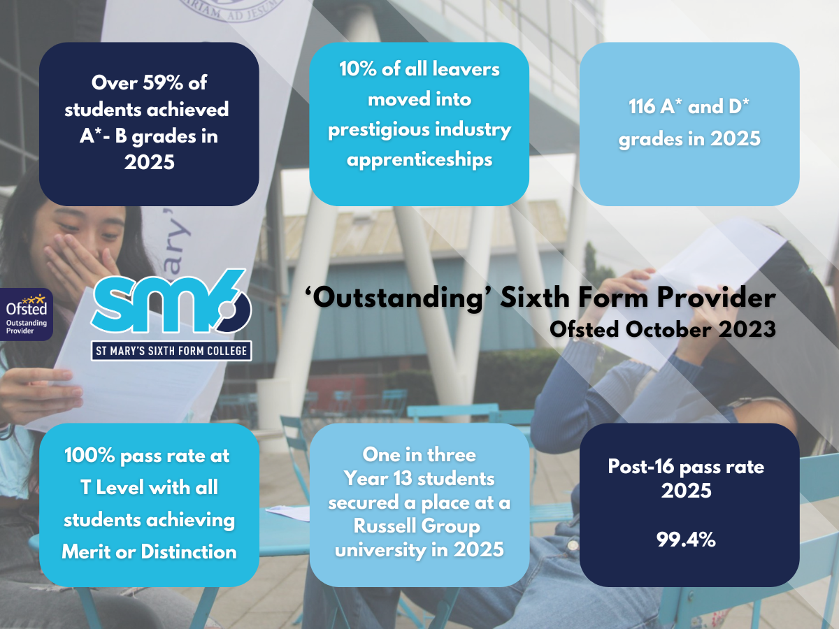 At SM6 students benefit from high quality teaching delivered by subject specialists with industry and exam board insight leading to exceptional outcomes including 59% of all grades at A*-B in 2025.