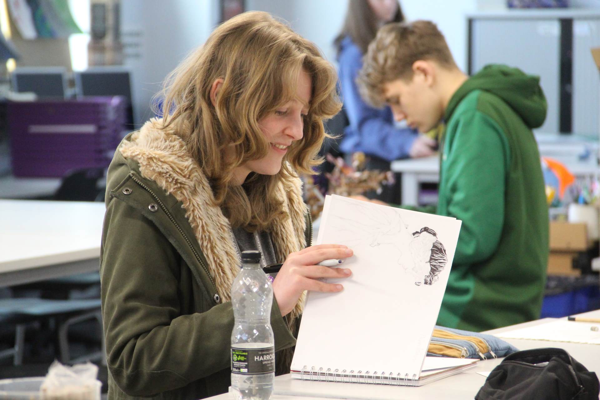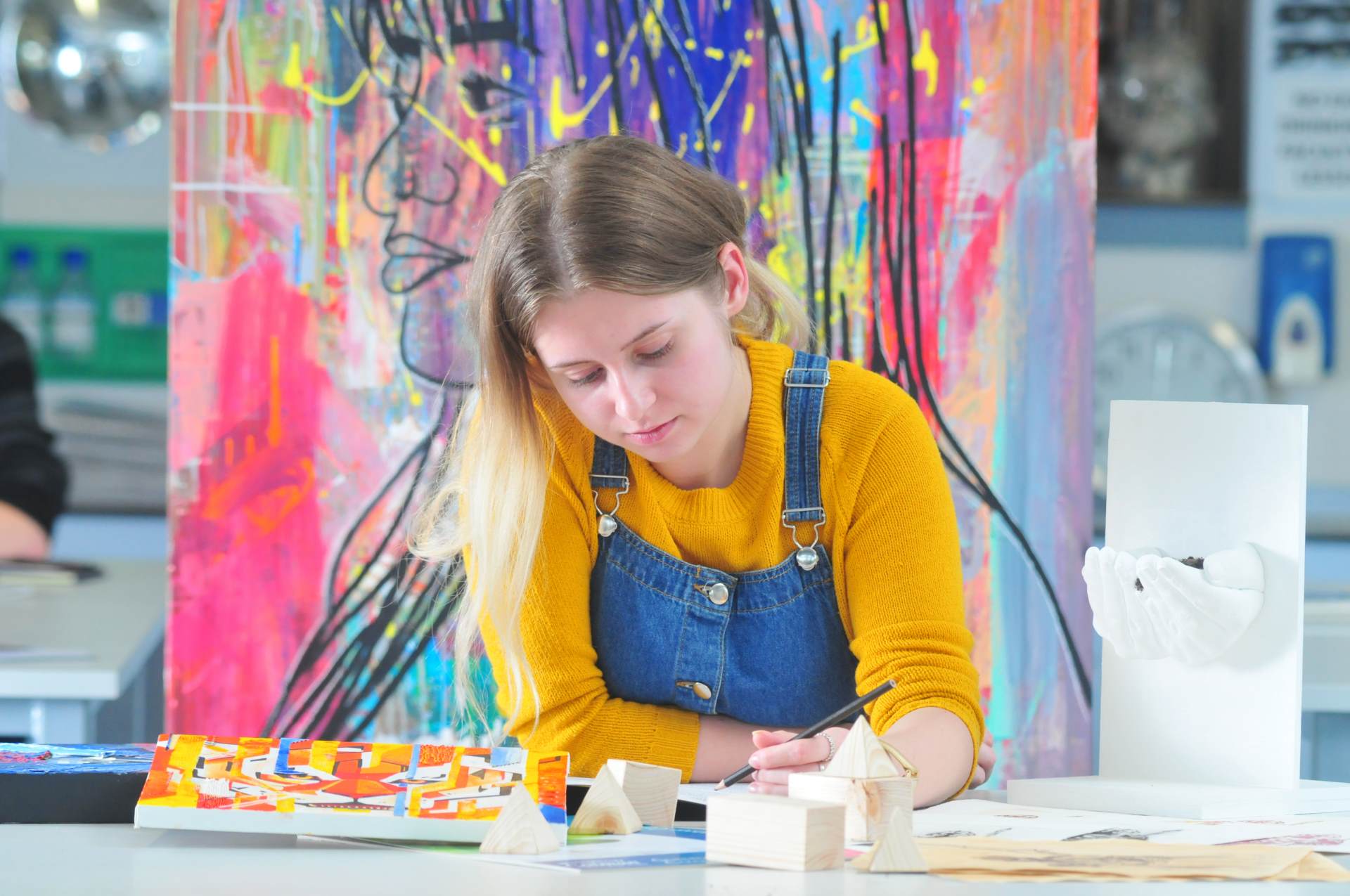 A-level Art and Design encourages students to explore visual arts through personal, creative, and practical work. Students develop skills in research, experimentation, and critical analysis while producing a portfolio and responding to an externally set assignment. Assessment includes a personal investigation (60%) and an externally set task (40%), both featuring practical work and written elements. The course fosters independent thinking and prepares students for further study or careers in creative industries.