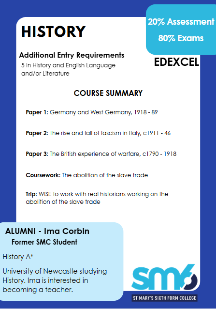 A-level History develops students’ understanding of key historical events, themes, and interpretations across different periods and regions. It includes four units: a breadth study, a depth study, a thematic study with historical interpretations, and an independent coursework investigation. Topics range from early modern to modern history, including British, European, and global contexts. The course emphasizes critical thinking, source analysis, and evaluation of historical interpretations. Assessment includes three written exams and one coursework component. This specification prepares students for further study and careers requiring analytical, research, and communication skills grounded in historical understanding.